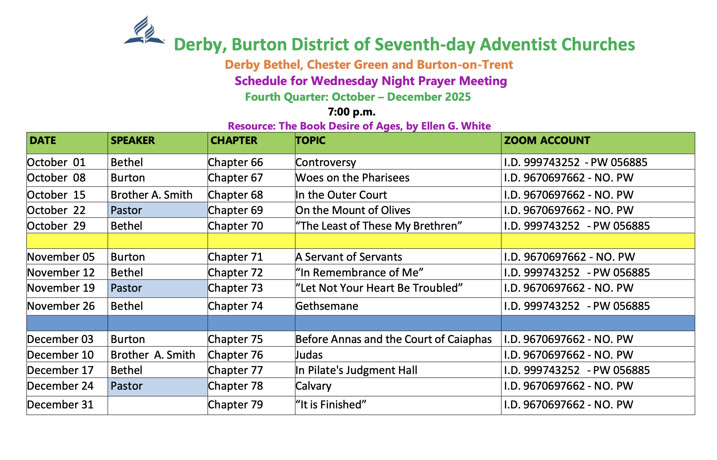 Prayer Meeting Schedule